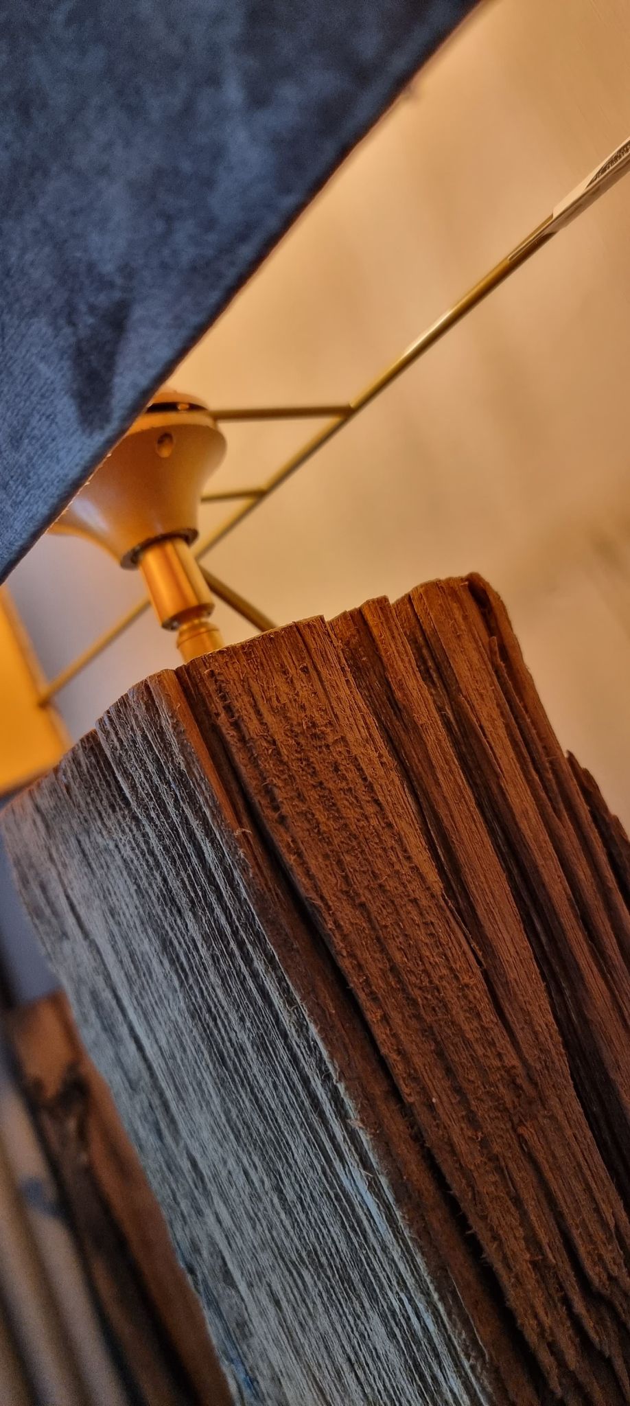Een unieke en authentieke wandlamp gemaakt van oud doorleefd railway-hout.
